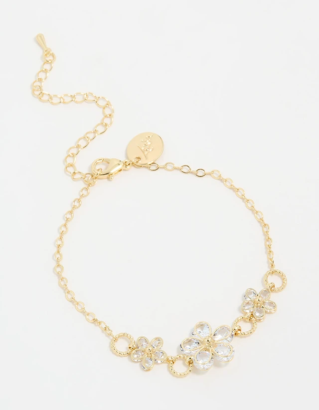 Gold Plated Cubic Zirconia Flower Station Bracelet
