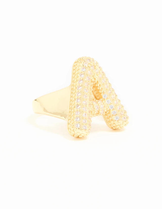 Gold Cubic Zirconia Letter A Charm Ring