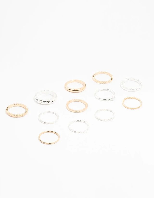 Mixed Metal Textured Spiral Stacking Rings 12-Pack