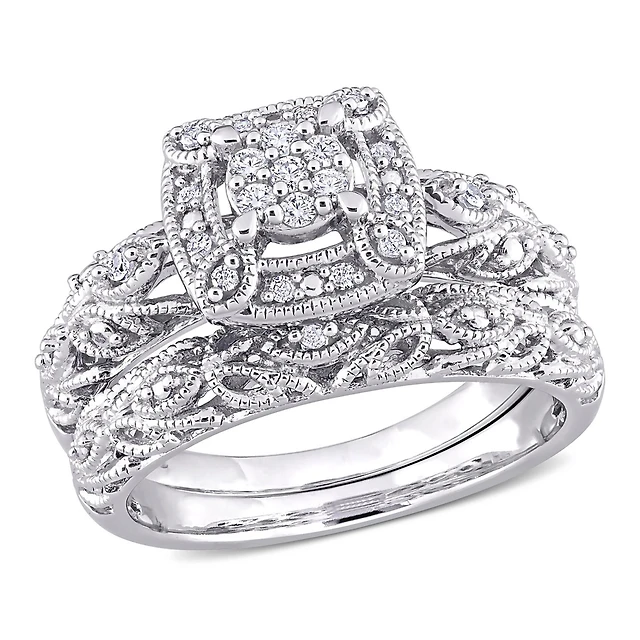 Julianna B Sterling Silver 0.10CTW Vintage Design Diamond Bridal Set
