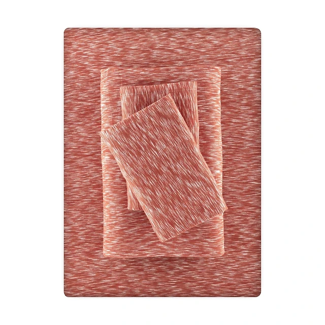 Mainstays 100% Cotton Extra Soft Jersey Bed Sheet Set, Double, Red Canyon Crackle, 4 Pieces, Jersey Sheet Set Cotton
