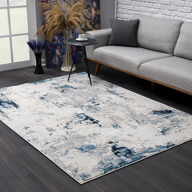 Rug Branch Vogue 2' x 25' (Exact Size: 2'3" 25') Abstract Indoor Runner Rug, Blue Cream, Contemporary - Entryway, Hallway, Bathroom, and Kitchen