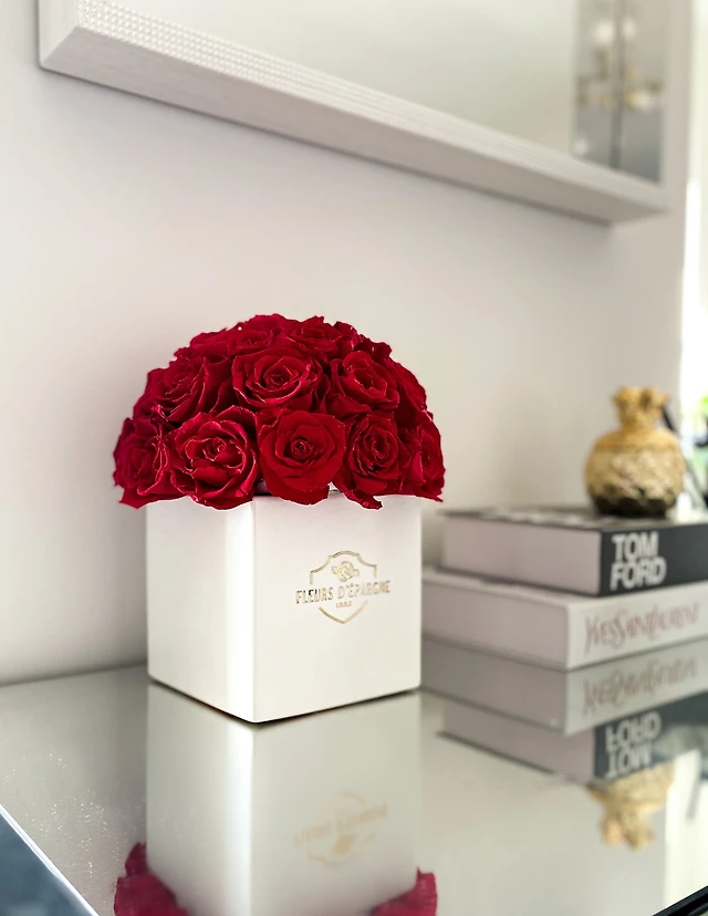 Lush Jumbo Rose in Square Glass Vase