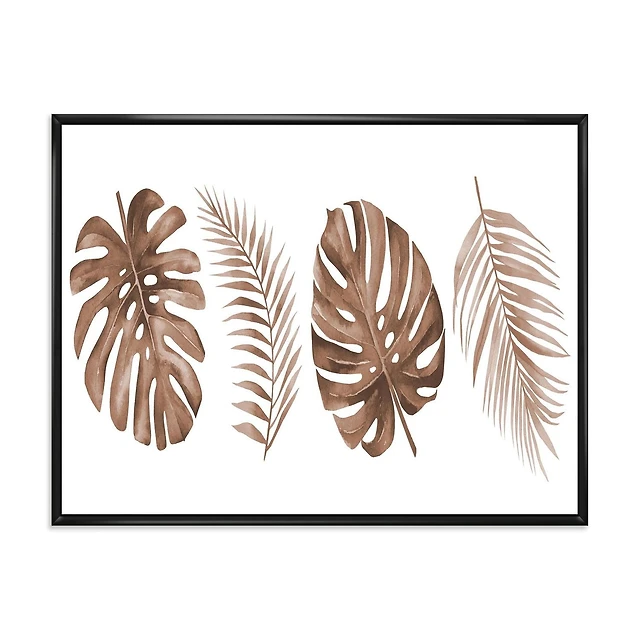 Designart Tropical Beiges Leaves FLOAT FRAME WALL ART