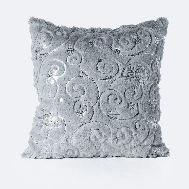 Furry Pillow-Silver Snowflakes