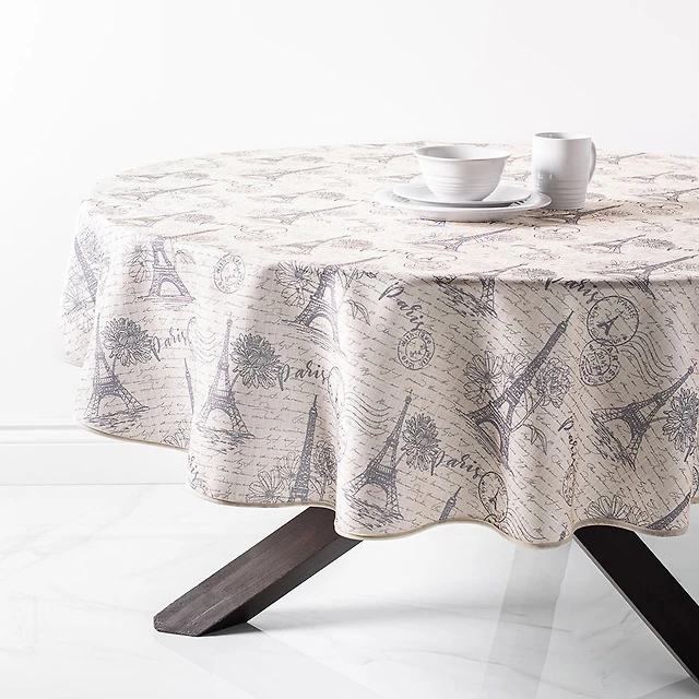 Easycare Printed 'Dahlia' Polyester Tablecloth 70" Round (Grey)
