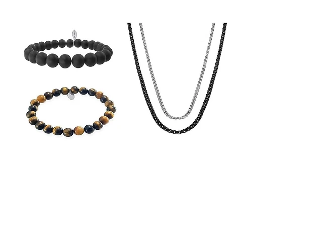 Luxury Designs Tiger Eye & Onyx Men’s stretch bracelets and Duo necklace set