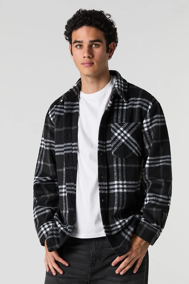 Men's NFL x Darius Rucker Collection by Fanatics Black Kansas City Chiefs Plaid Flannel Quilted Full-Snap Hooded Shacket