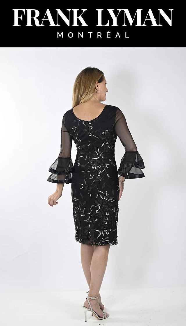 V-Neck Sheer Sequin Sleeves Cocktail Dress