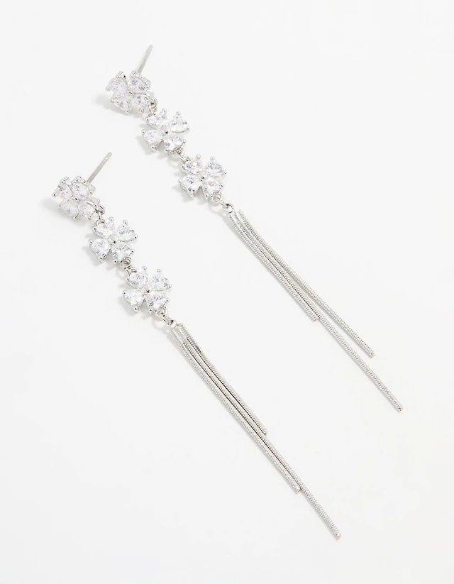 Silver Plated Cubic Zirconia Dainty Cup Chain Floral Necklace