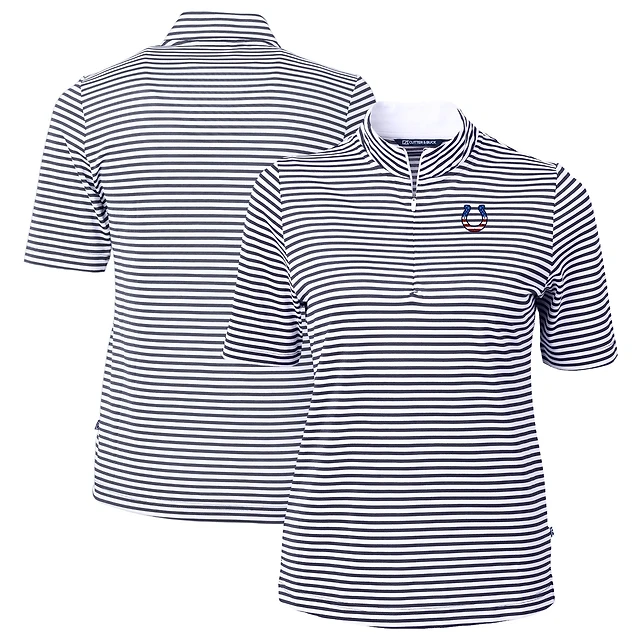 Women's Cutter & Buck Navy Indianapolis Colts DryTec Virtue Eco Pique Stripe Recycled Polo
