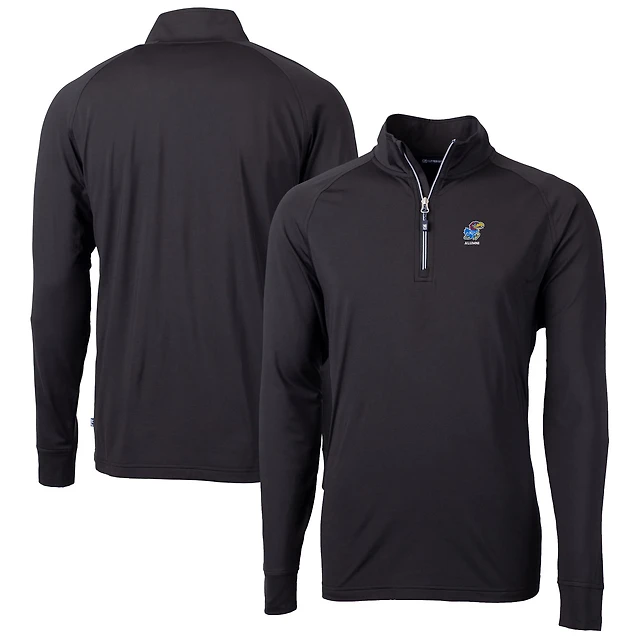 Men's Cutter & Buck Black Kansas Jayhawks Alumni Logo Adapt Eco Knit Stretch Recycled Quarter-Zip Pullover Top