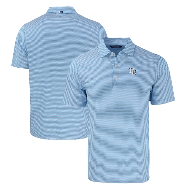 Men's Cutter & Buck Light Blue/White Tampa Bay Rays Forge Eco Double Stripe Stretch Recycled Polo