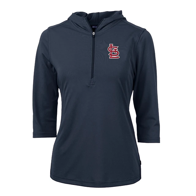 Women's Cutter & Buck Navy St. Louis Cardinals Virtue Eco Pique 3/4 Sleeve Half-Zip Pullover Hoodie