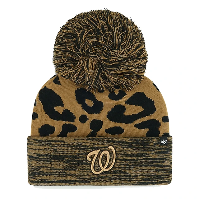 Women's '47 Washington Nationals Leopard Rosette Cuffed Knit Hat with Pom
