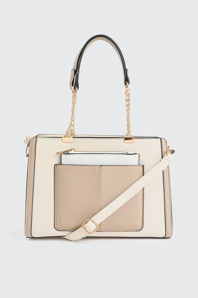 Ardene Small Tote Bag with Chain Straps in Beige | Faux Leather/Polyester