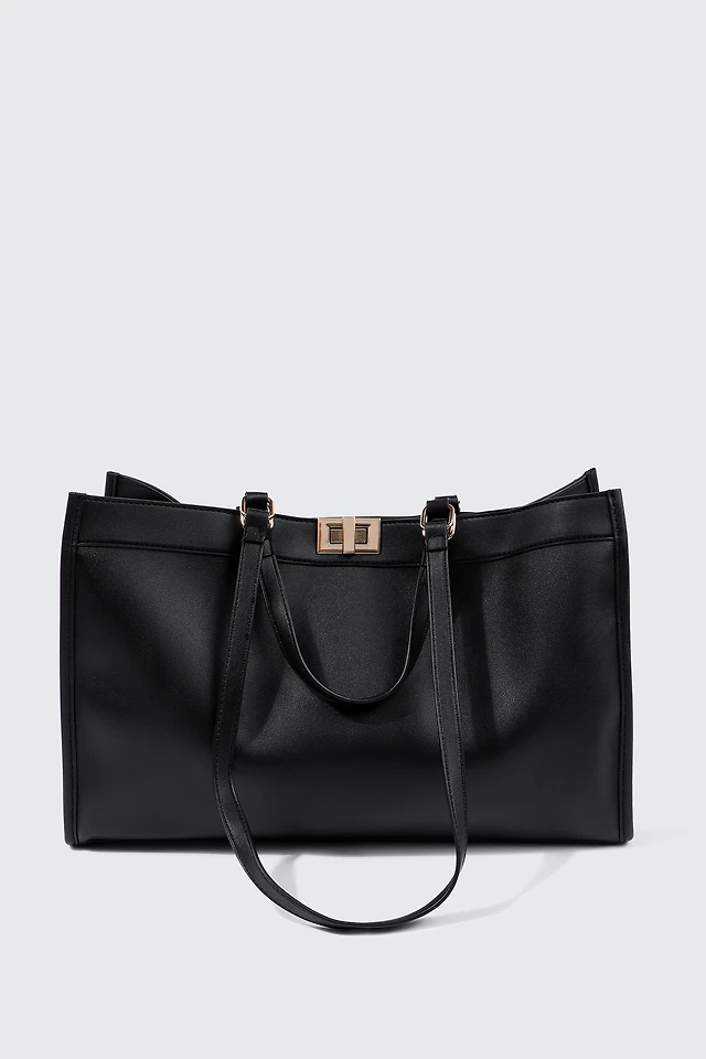 Ardene Faux Leather Tote Bag with Padlock Detail in Black | 100% Recycled Polyester/Faux Leather | Eco-Conscious