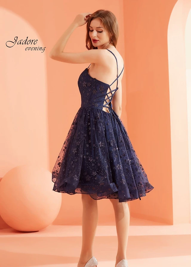 V-Neck Sheer Sequin Sleeves Cocktail Dress