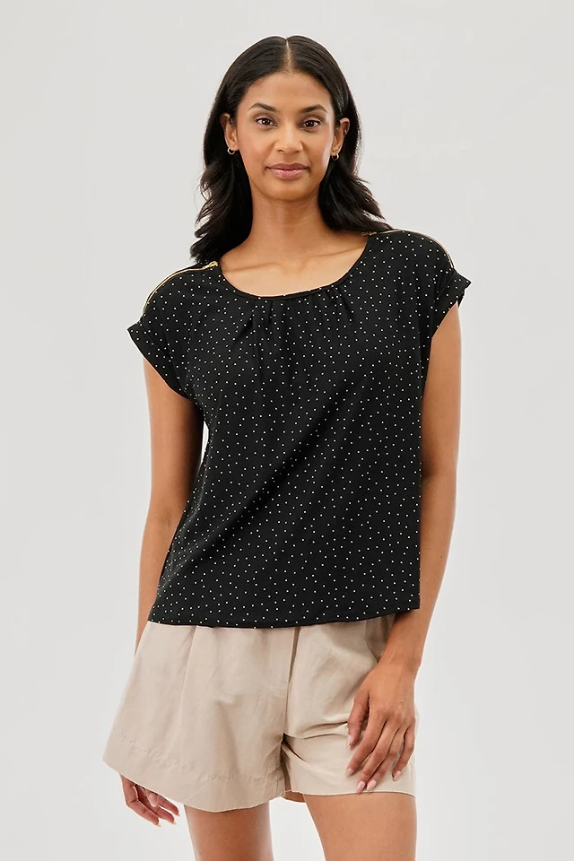 Beechers Brook Polka Dot Cap Sleeve Blouse - Black