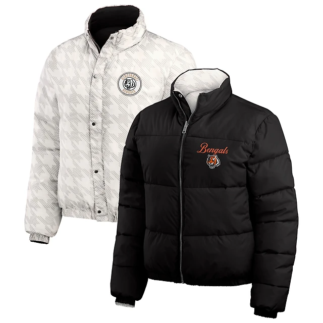 Women's WEAR by Erin Andrews Black/White New Orleans Saints Reversible Cropped Full-Zip Puffer Jacket