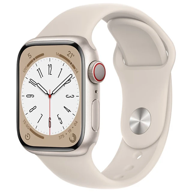 Bell Apple Watch Series 8 (GPS + Cellular) 41mm Starlight Aluminum Case w/ Starlight Sport Band - S/M - Monthly Financing