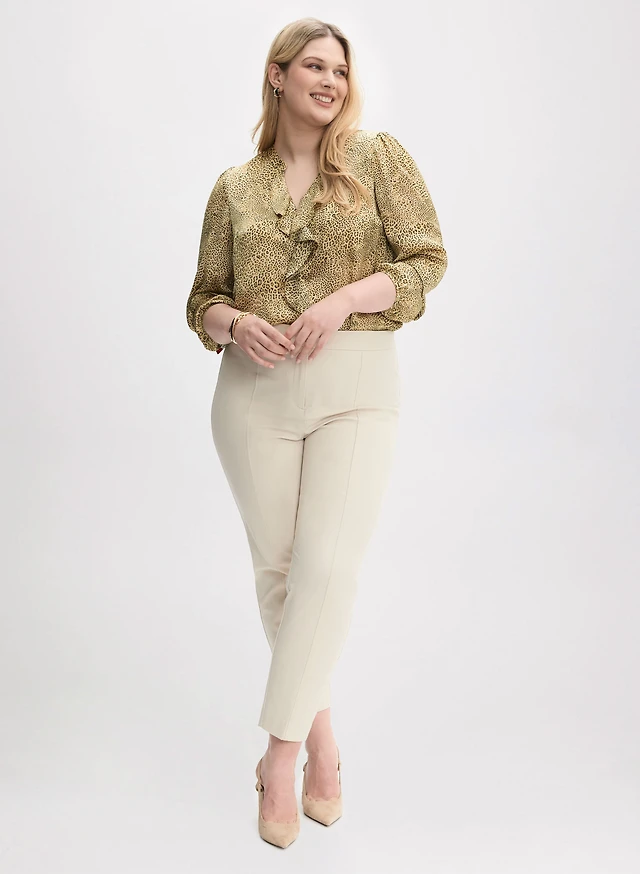 Ruffle Trim Blouse & Slim Leg Pants