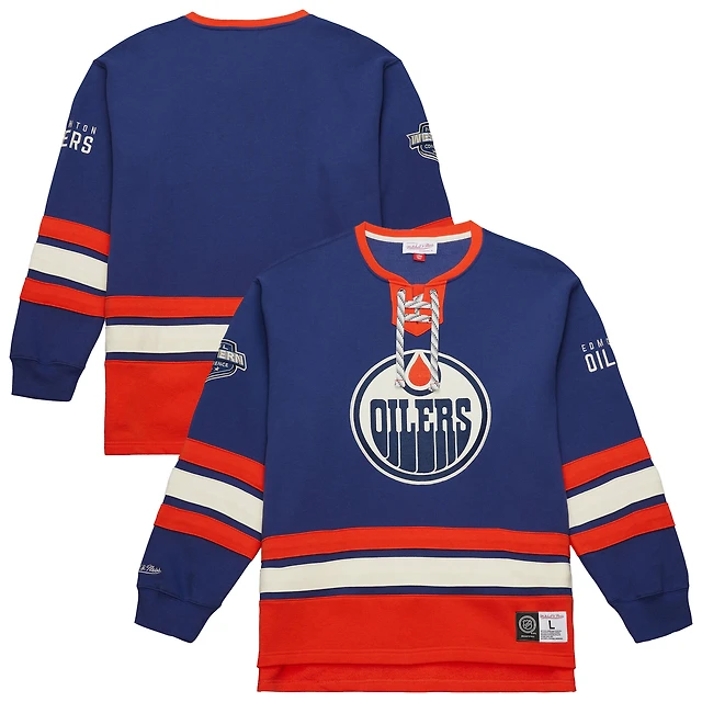Men's Starter Orange Edmonton Oilers Cross-Check V-Neck - Long Sleeve T-Shirt