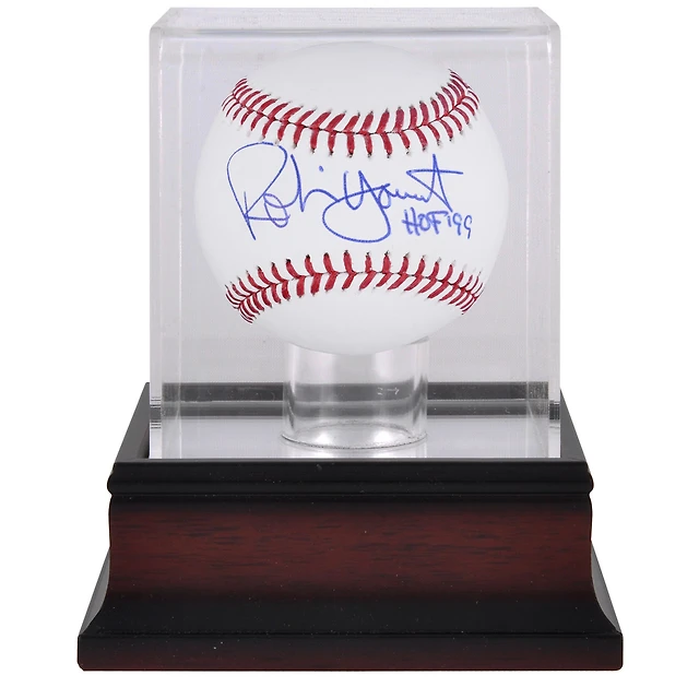 Robin Yount Milwaukee Brewers Autographed Baseball with "HOF 99" Inscription and Mahogany Baseball Display Case