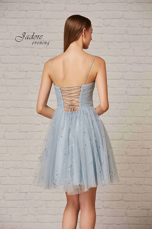 Mesh & Sequin Fit Flare Dress