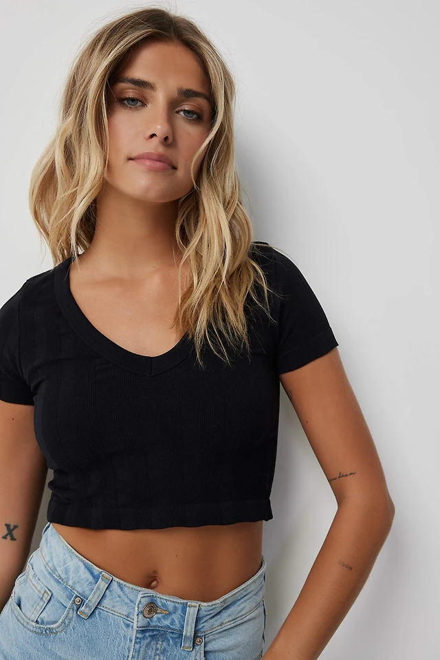 Ardene Ultra Crop Picot Trim T-Shirt in | Size | Cotton/Elastane