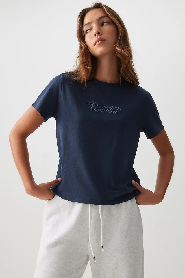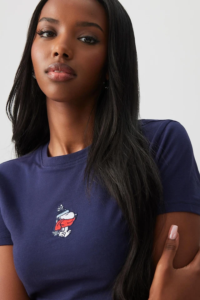 Ardene Graphic Baby T-Shirt in Dark Blue | Size Large | Cotton/Elastane