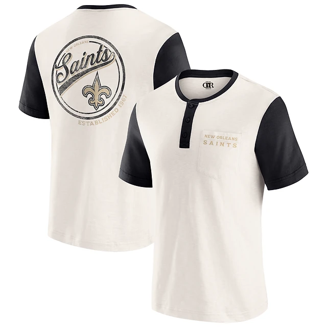 Men's Darius Rucker Collection by Fanatics Cream New Orleans Saints Henley Colorblock Slub Pocket T-Shirt
