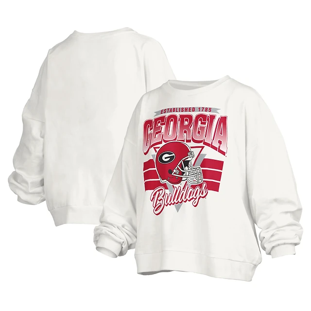 Women's Pressbox White Florida Gators Janice Retro Logo Oversized Pullover Sweatshirt