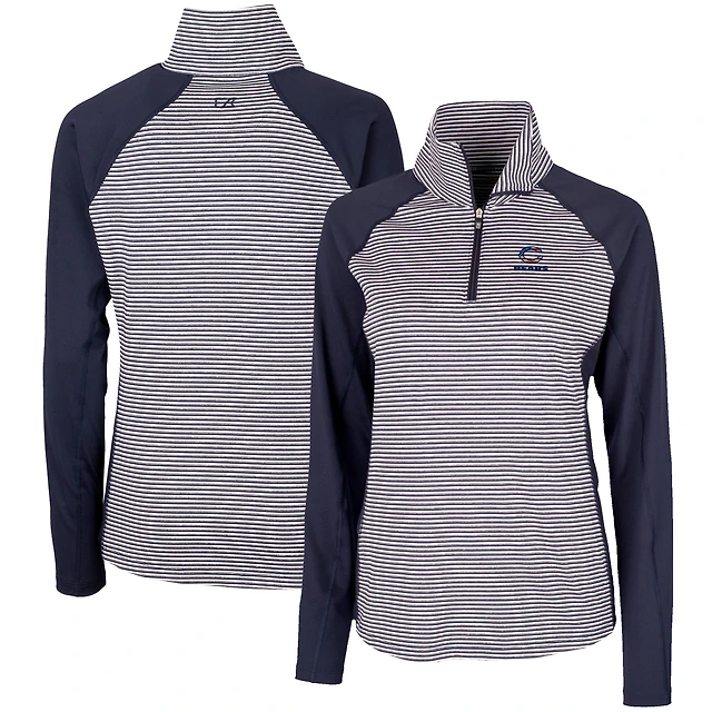 Women's Cutter & Buck Navy Chicago Bears Throwback Logo Forge Tonal Stripe Stretch Half-Zip Pullover Top