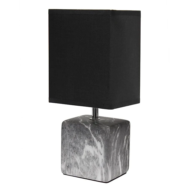 Simple Designs Petite Marbled Ceramic Table Lamp with Fabric Shade