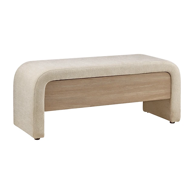 CorLiving Antonio 46" Wide Fabric Upholstered Indoor Bench with Curved Wood Legs, Dark Grey