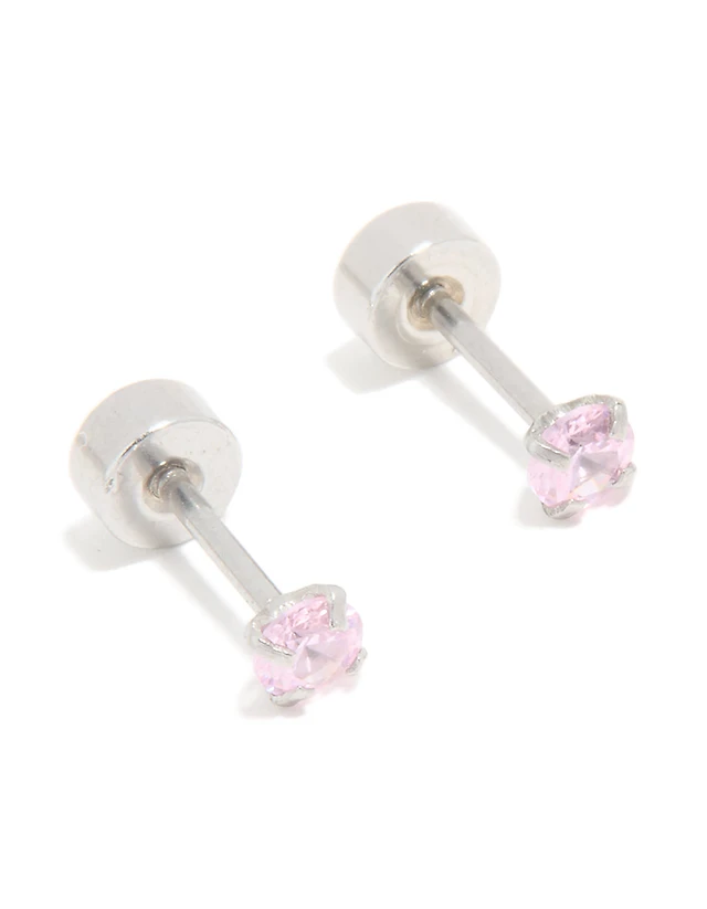 Kids Gold Plated Surgical Steel Cubic Zirconia Heart Flat Back Earrings