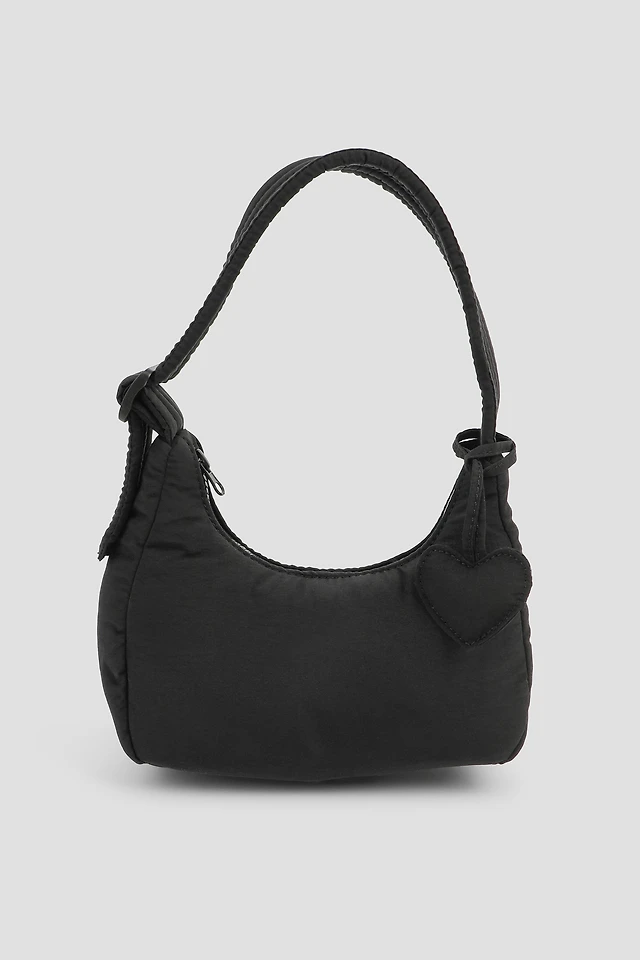 Ardene Nylon Shoulder Bag with Charm in Black | 100% Recycled Polyester/Nylon | Eco-Conscious