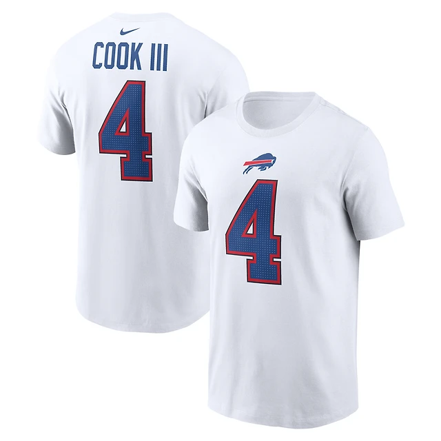 Men's Nike James Cook III White Buffalo Bills Player Name & Number T-Shirt