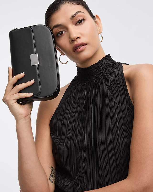 Ardene Tote Bag in Black | 100% Recycled Polyester/Faux Leather | Eco-Conscious