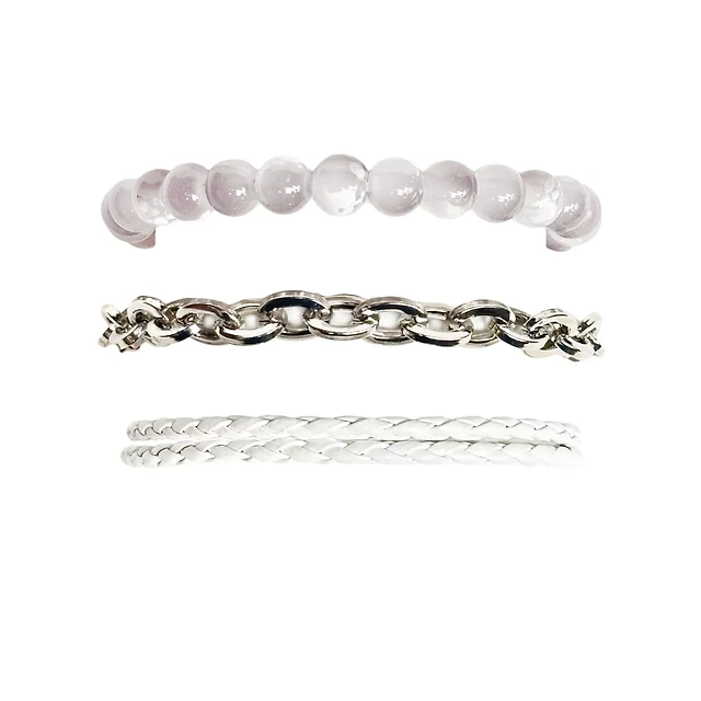 Multi-Pack White Beaded Cord and Chain Bracelets - 3 Pack