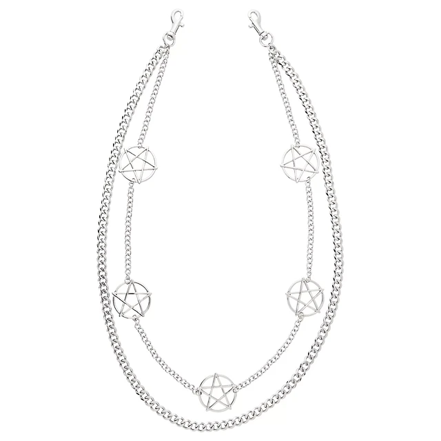 3 Row Black and Silver-Tone Spike Wallet Chain