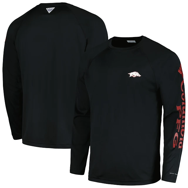 Men's Columbia Black Arkansas Razorbacks Terminal Tackle Omni-Shade Raglan Long Sleeve T-Shirt