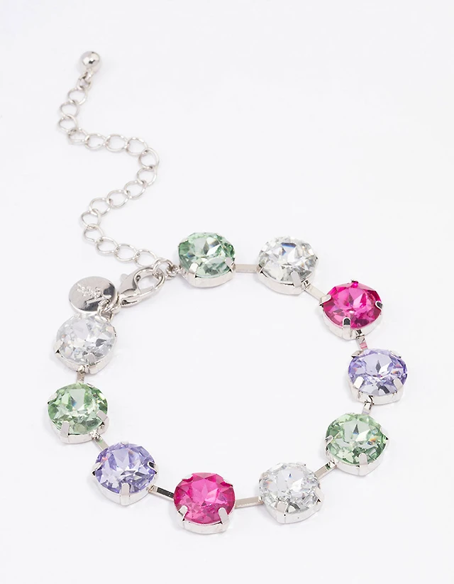 Silver Embellished Stone Stretch Bracelet