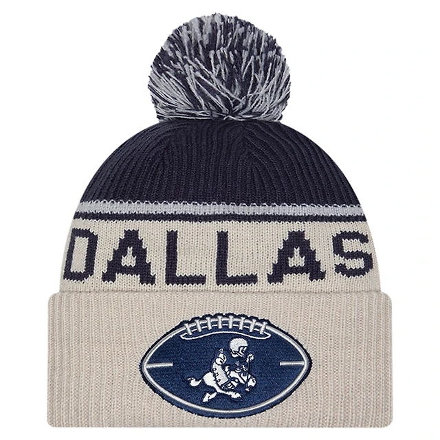 Men's New Era Stone Dallas Cowboys NFL Sideline Historic Cuffed Knit Hat with Pom