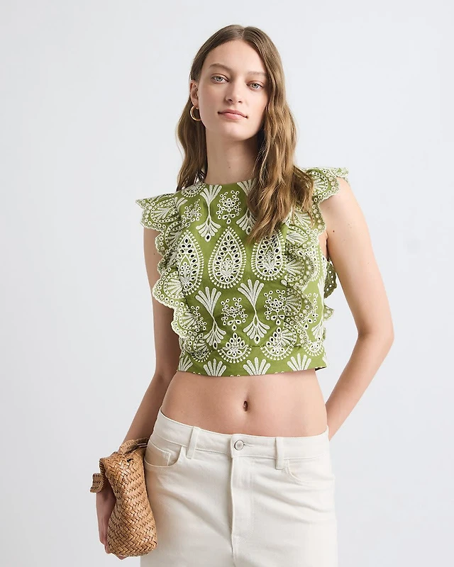 Sleeveless U-Neck Empire-Cut Blouse with Ruffles