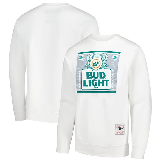Men's Mitchell & Ness x Bud Light White Denver Broncos The Crest Pullover Sweatshirt