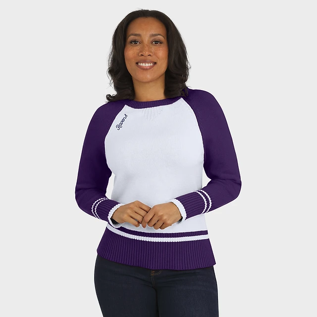 Women's WEAR by Erin Andrews White/Powder Blue Los Angeles Chargers Colorblock Raglan Sweater