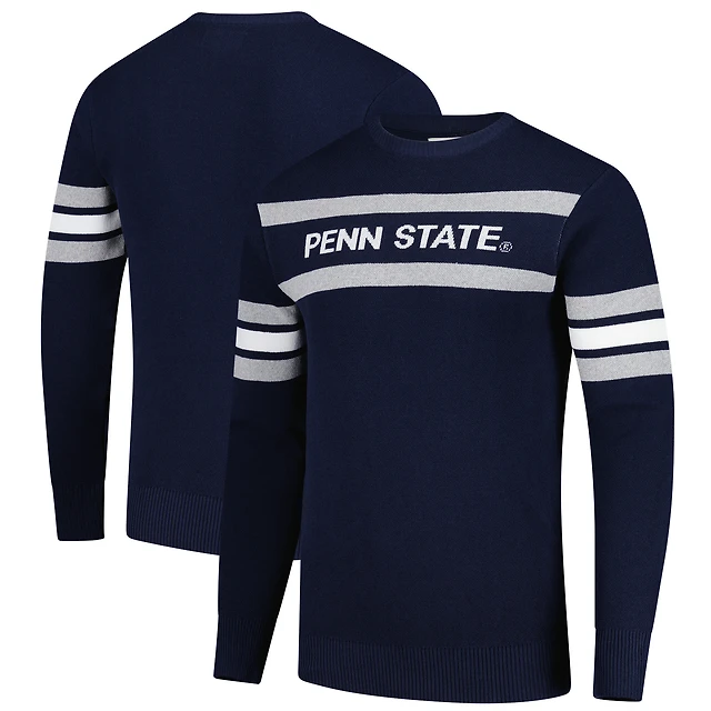 Women's WEAR by Erin Andrews Cream Penn State Nittany Lions Chenille Woven Patch Stripe Pullover Sweater