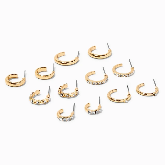 Gold Plated Molten Huggie & Cubic Zirconia Chain Earrings 4-Pack